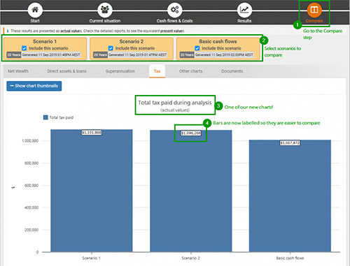 Compare scenarios more easily with our new charts and documents
